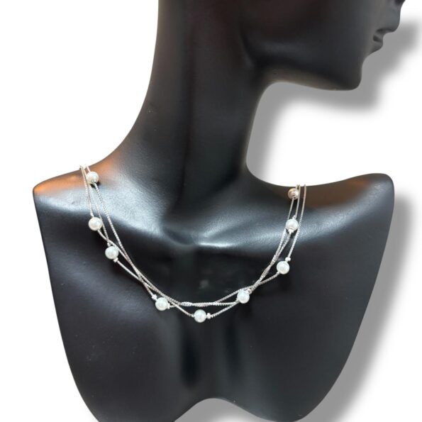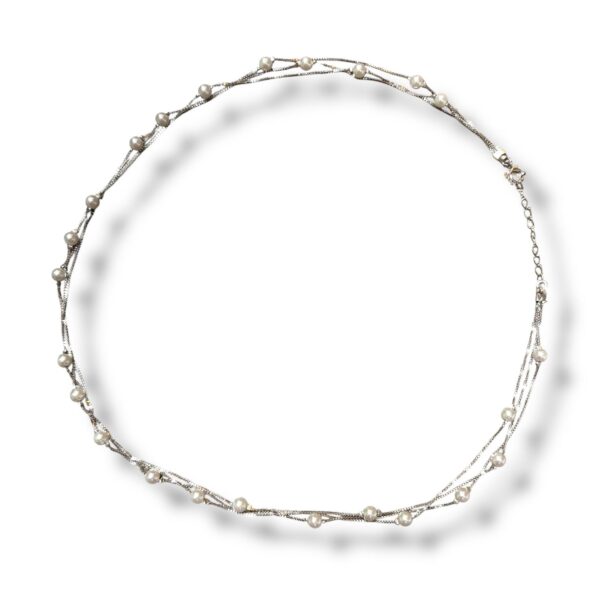 Un colier atemporal, care combină frumusețea naturală a perlelor cu strălucirea argintului, oferindu-ți un plus de eleganță la fiecare purtare.