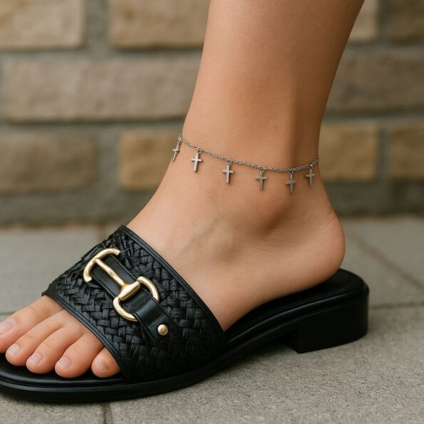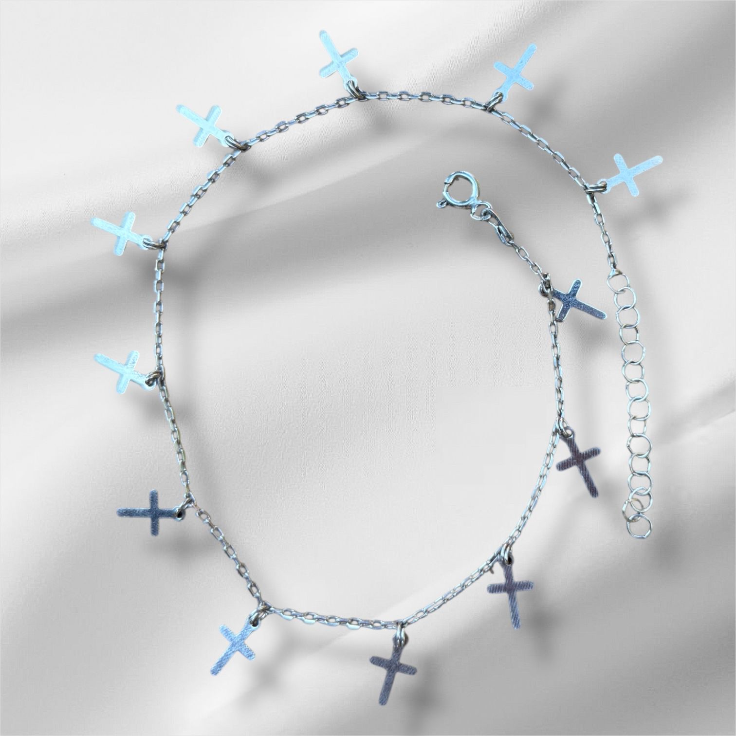 Transformă fiecare pas într-o declarație de stil cu această brățară de picior cu cruciulițe – un accesoriu atemporal, cu semnificație.