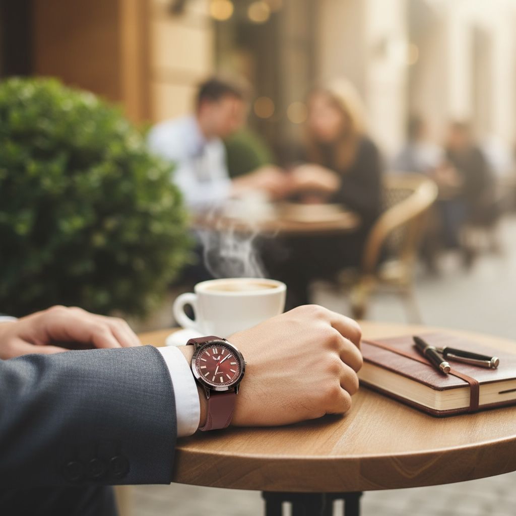 Ceas bărbătesc modern, cu cadran maro dotat cu mecanism quartz precis.