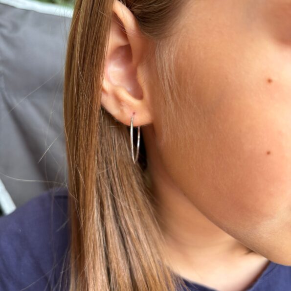 Acești cercei din argint simpli și rotunzi sunt o alegere subtilă și elegantă, potrivită pentru orice ocazie.