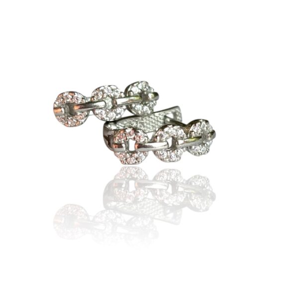 Rafinament, eleganță și strălucire discretă – toate într-o singură pereche de cercei. Realizați din argint 925 de înaltă calitate, acești cercei impresionează prin designul lor inedit tip lanț, compus din zale pavate cu zirconii fine, care captează perfect lumina.