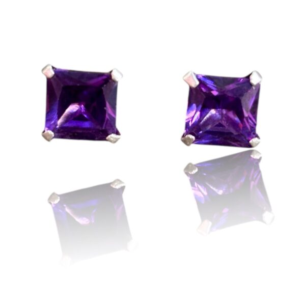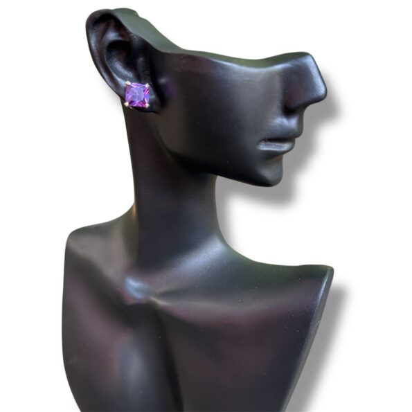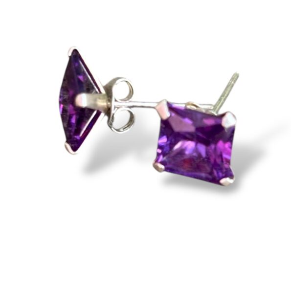 Răsfață-te cu eleganța pură a acestor cercei din argint, încrustați cu zirconii violet de formă pătrată, tăiate cu precizie pentru un plus de strălucire.