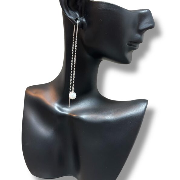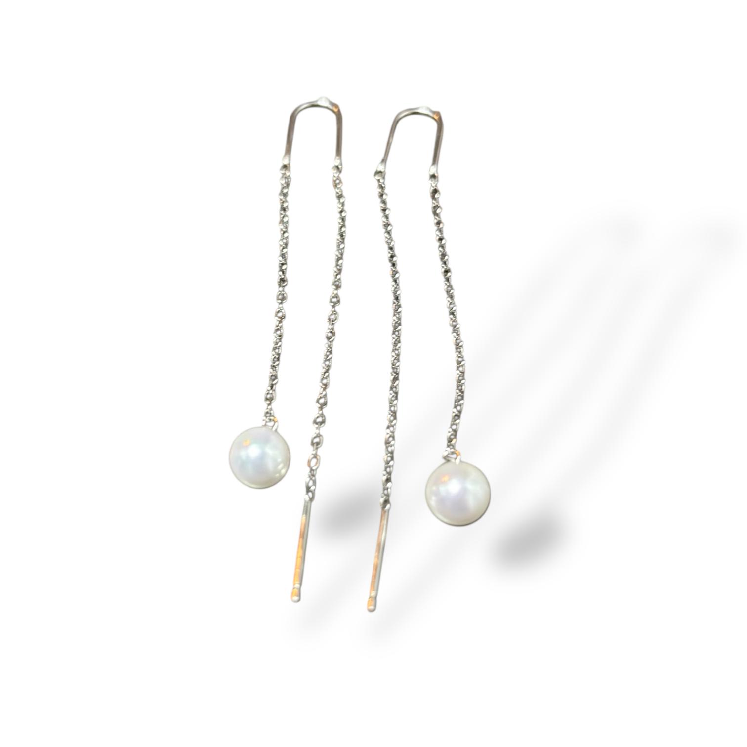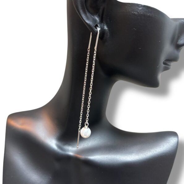 Cercei din argint 925, fin lucrați, cu lanț subțire și perlă naturală ce adaugă o notă de eleganță și feminitate.