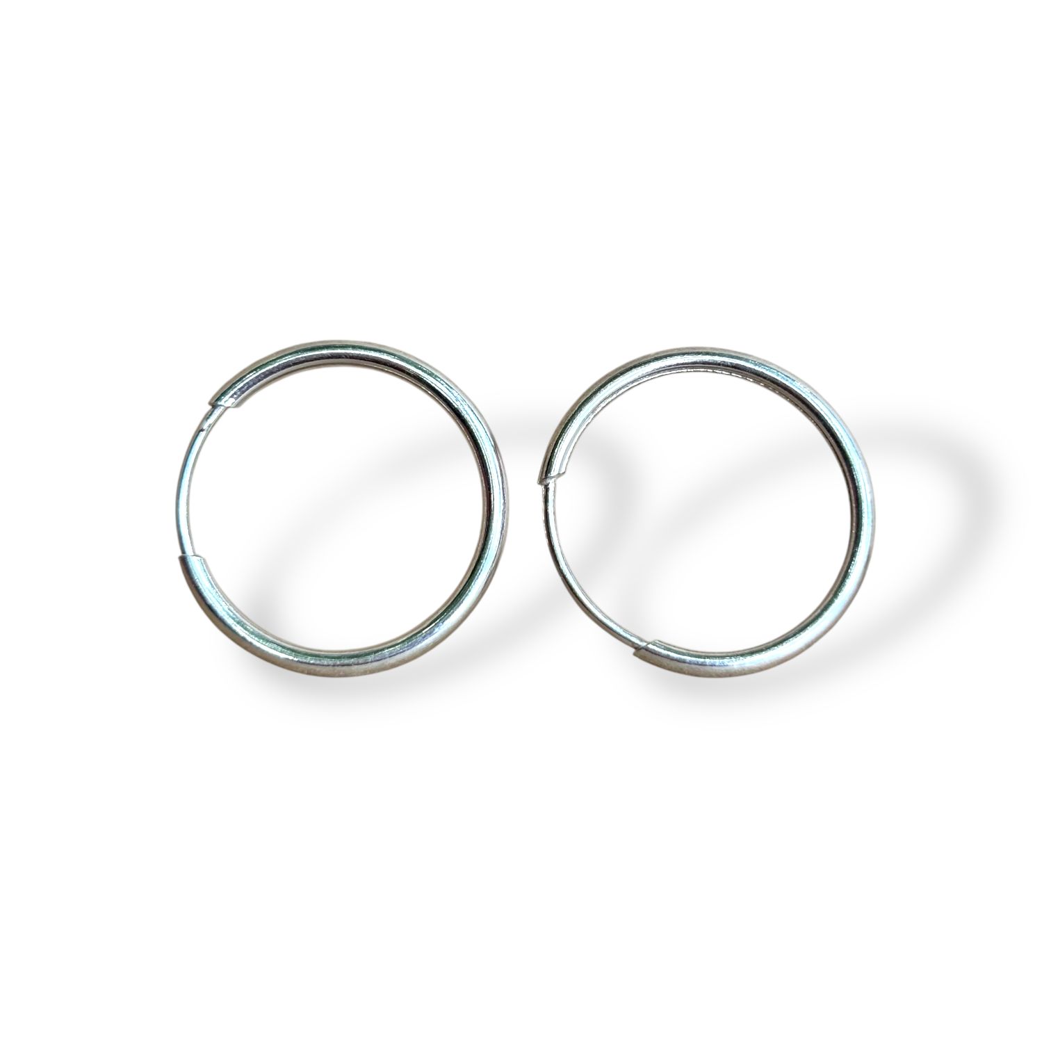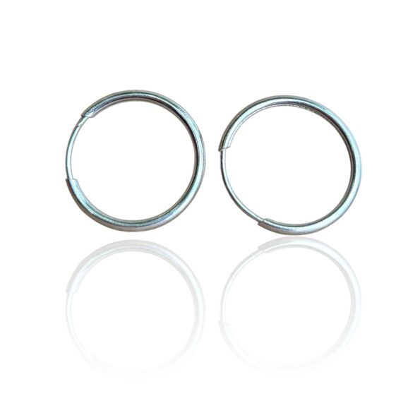 Acești cercei rotunzi din argint au un design clasic și echilibrat, cu o grosime discretă ce îi face mai vizibili decât modelele extra-subțiri.