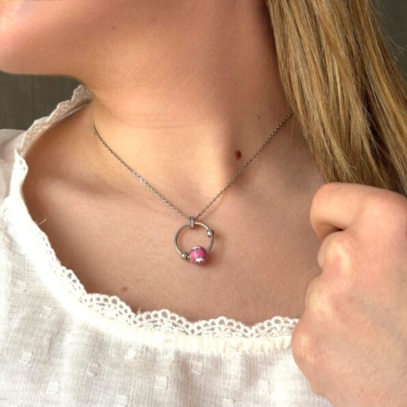 Colier din argint 925 cu pandantiv circular și perlă roz