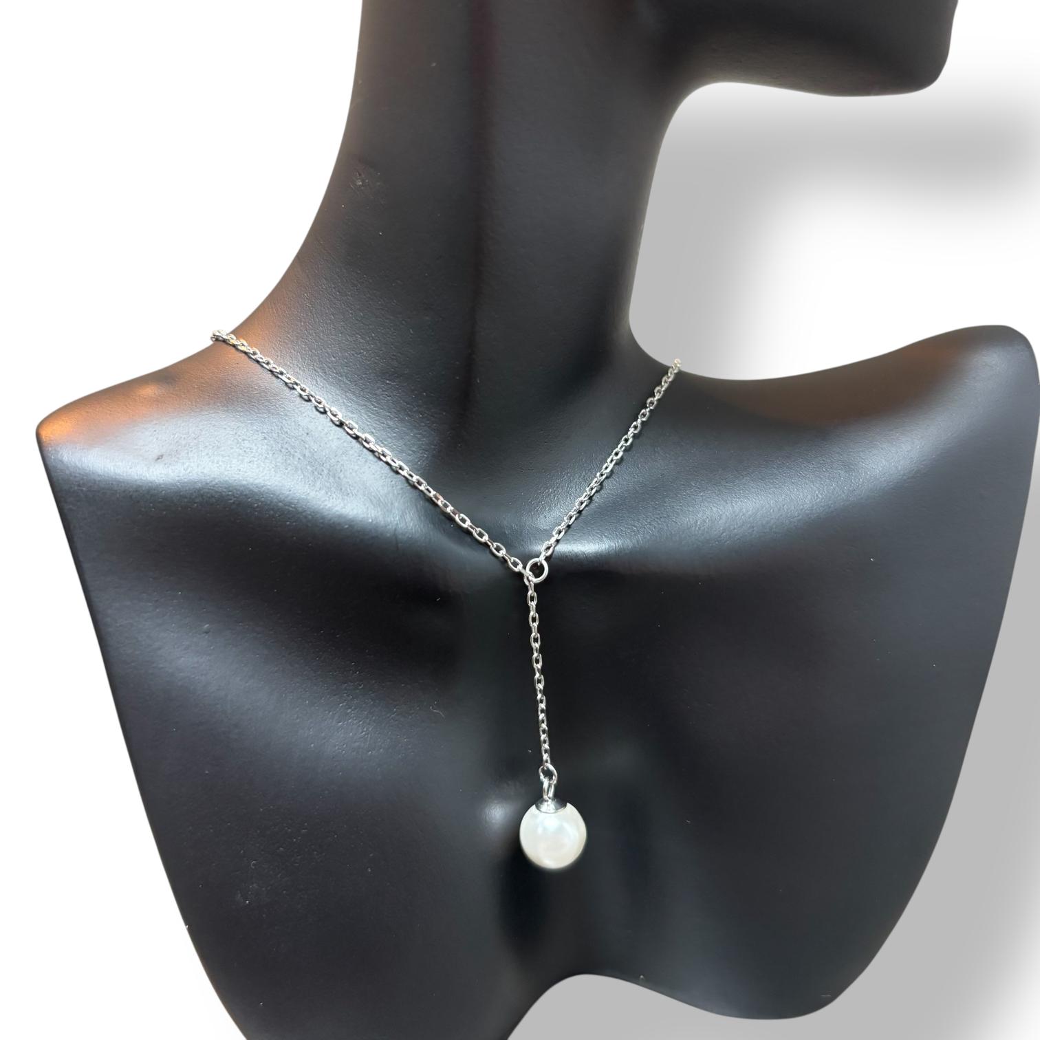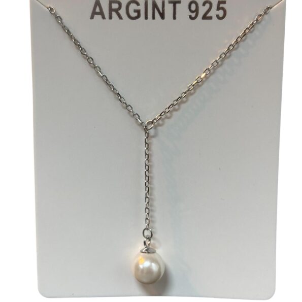 Elegant și rafinat, acest colier din argint 925 are un design minimalist în formă de „Y”, completat de o perlă delicată care atârnă grațios.