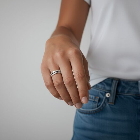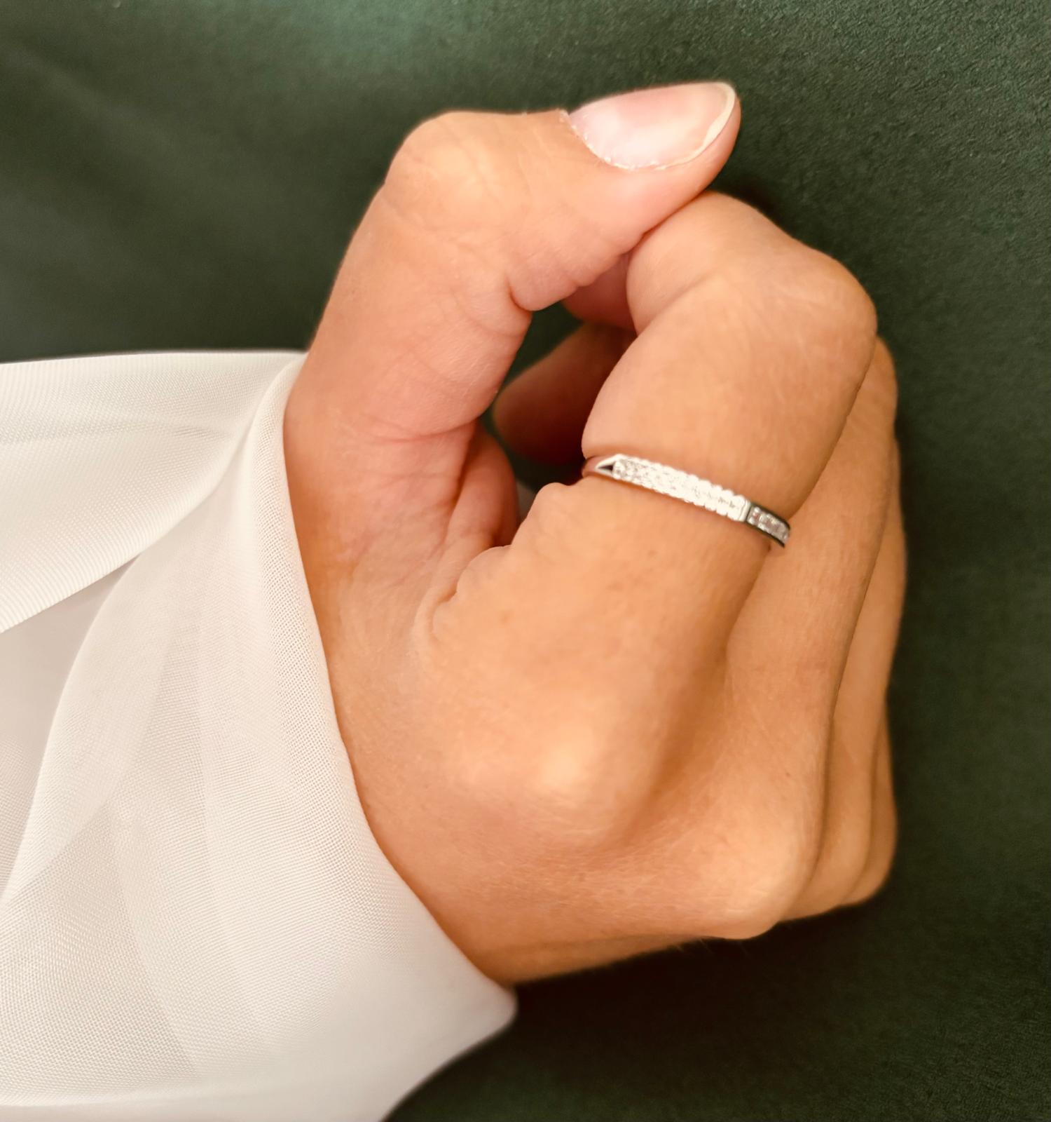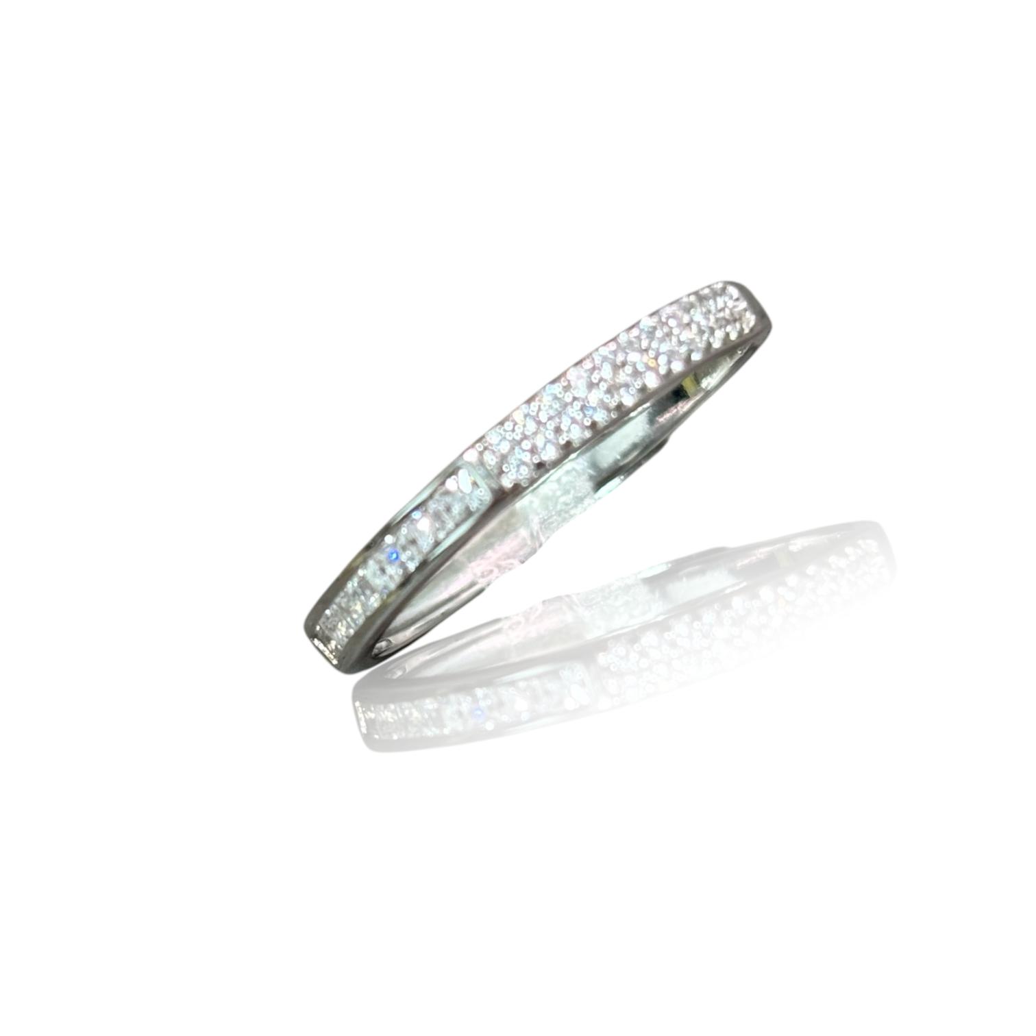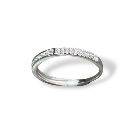 Inel elegant din argint 925, decorat cu zirconii transparente dispuse într-un model modern și rafinat.