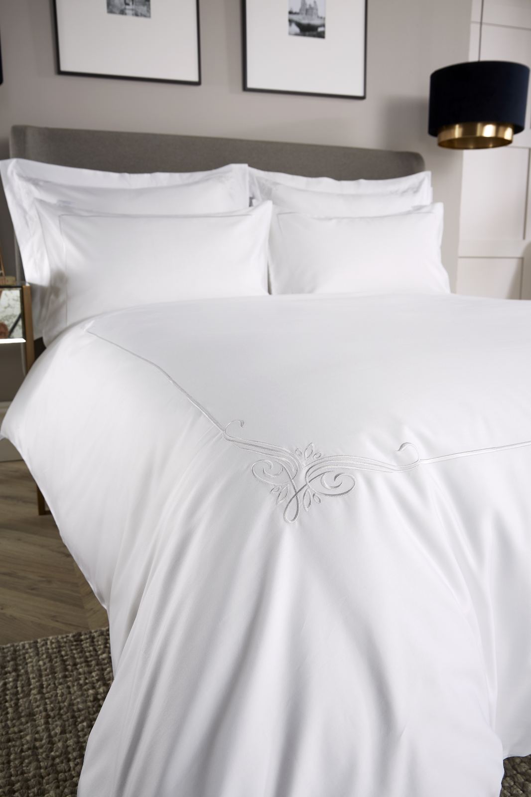 Lenjerie pat WIlliam Hunt Motif Corner 600TC Alb