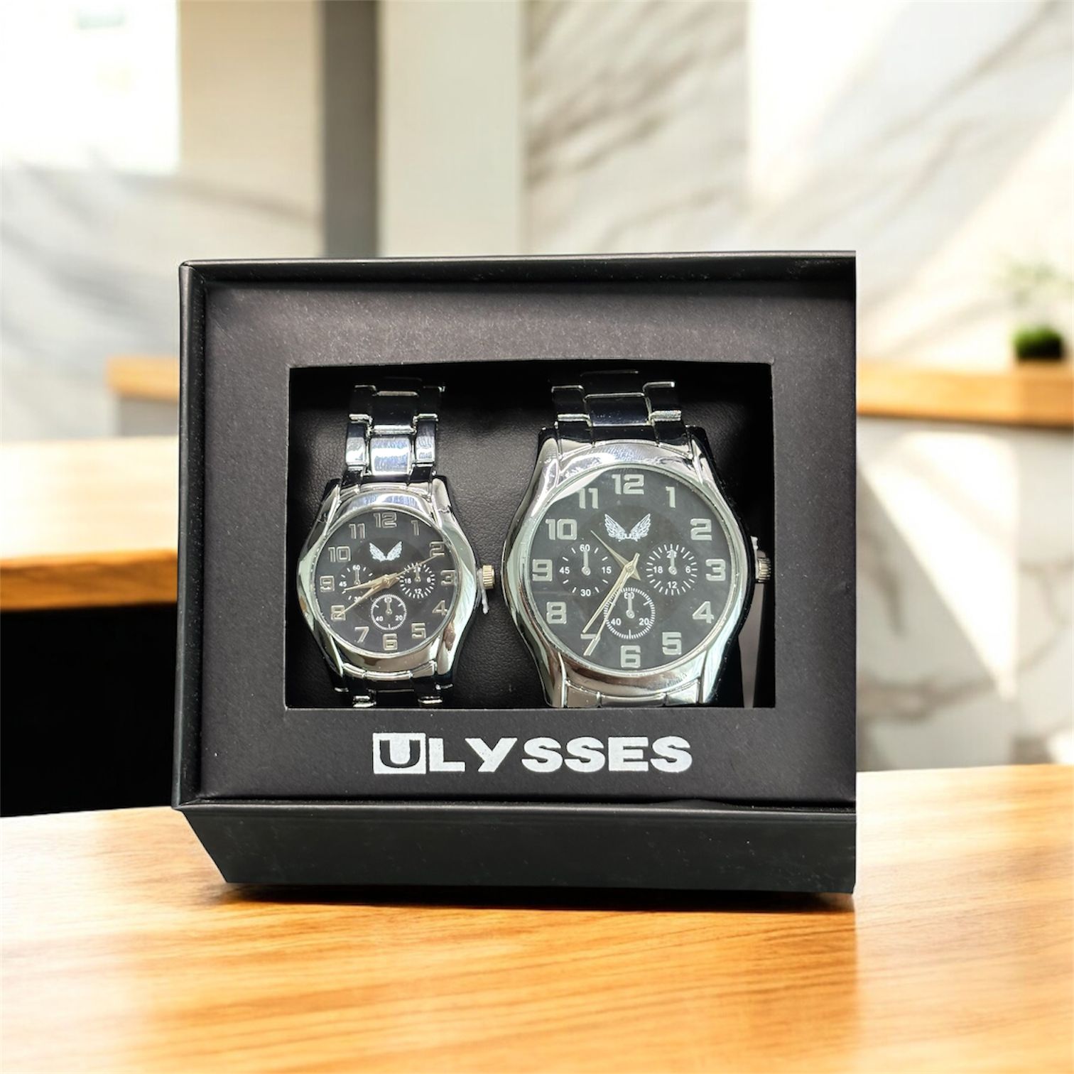 Acest set elegant de ceasuri ULYSSES este alegerea perfectă pentru cupluri care apreciază stilul, rafinamentul și accesoriile asortate. Conceput pentru a îmbina eleganța clasică cu funcționalitatea modernă, setul include un ceas pentru bărbat și unul pentru damă, ambalate într-o cutie ideală pentru cadou.