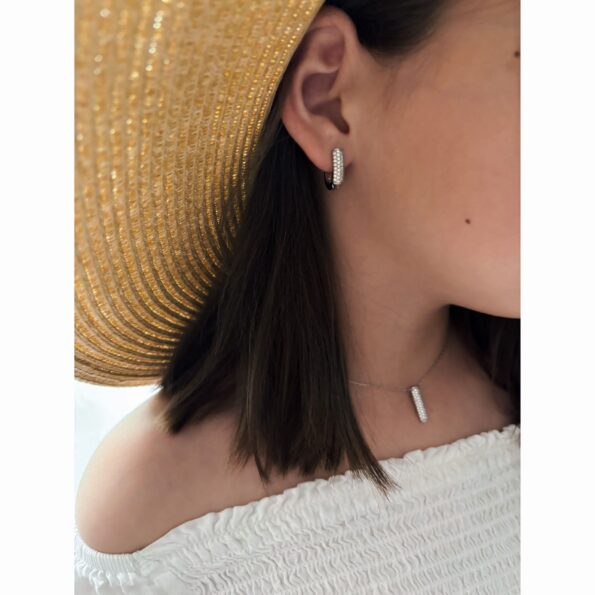 Toate piesele sunt decorate cu mici pietre zirconiu strălucitoare, dispuse uniform pentru un efect sofisticat și rafinat.